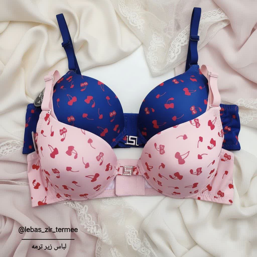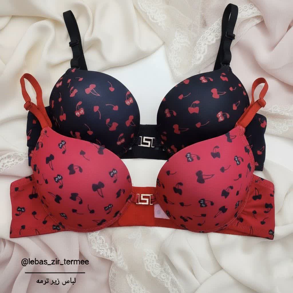 سوتین اسفنجی و زیرفنردار اکسسوریدار کاپ B، طرح گیلاس قلبی