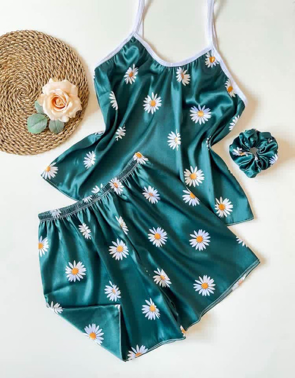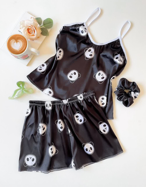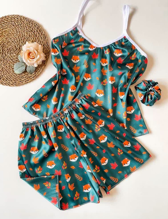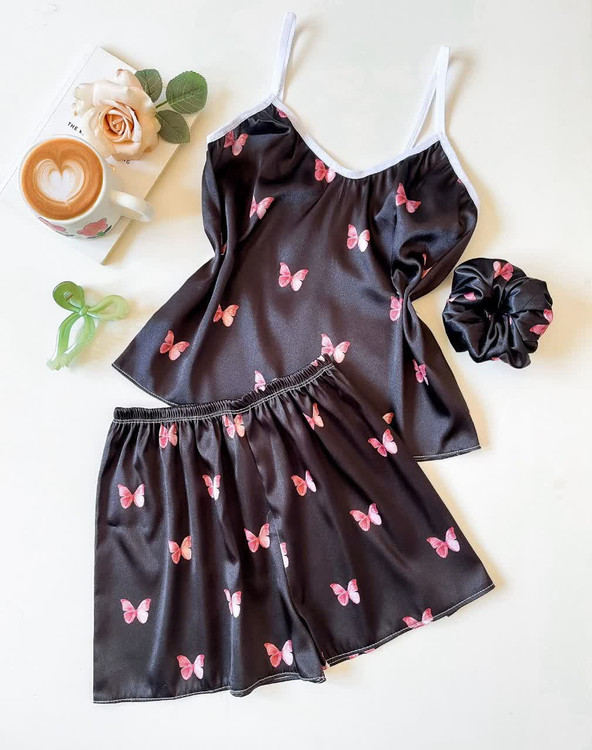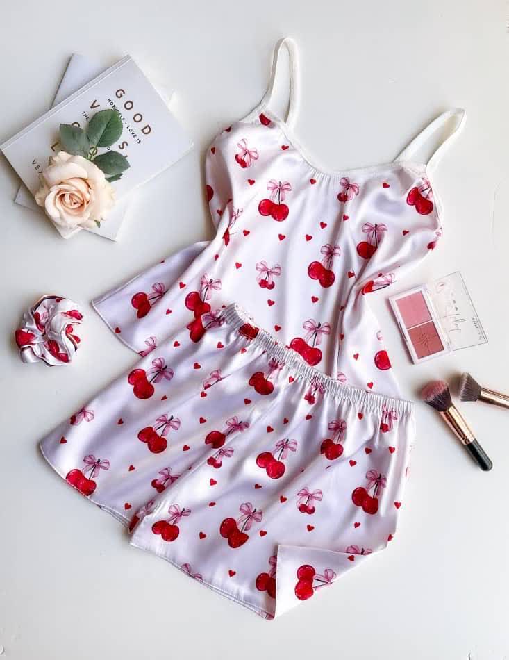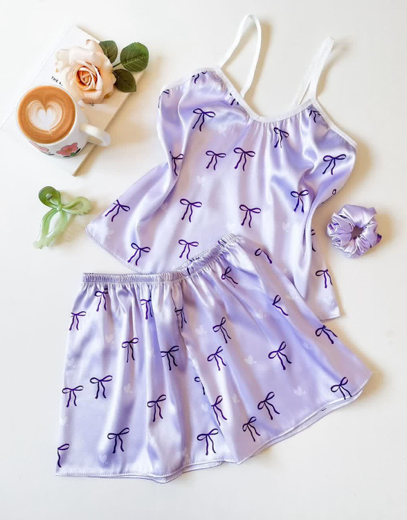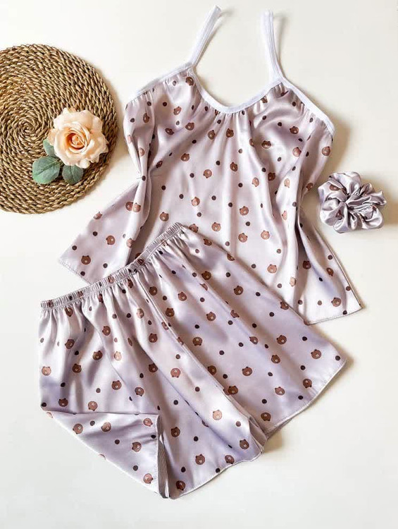 ست (لباس خواب) ساتن تاپ و شلوارک ال ایکس با کش مو