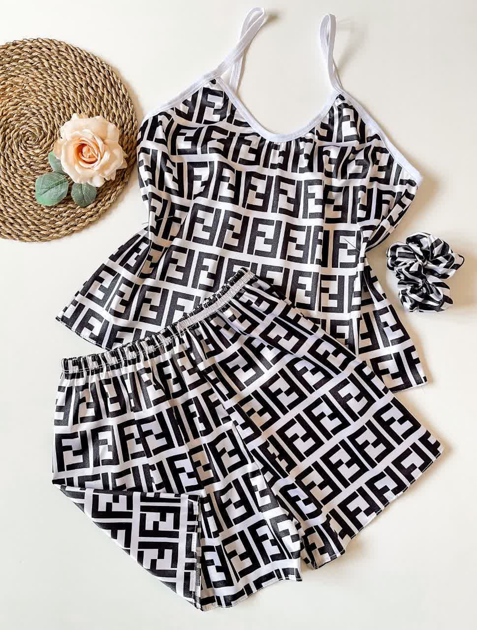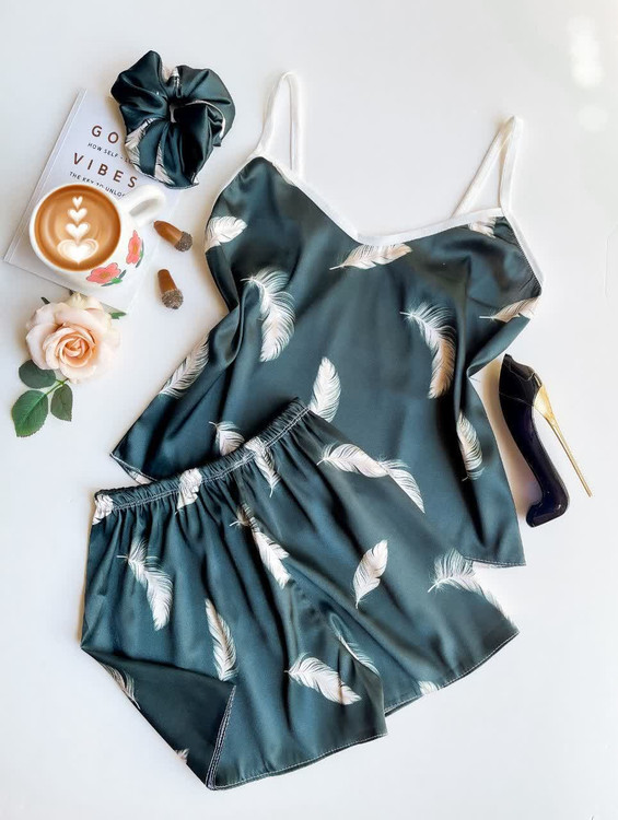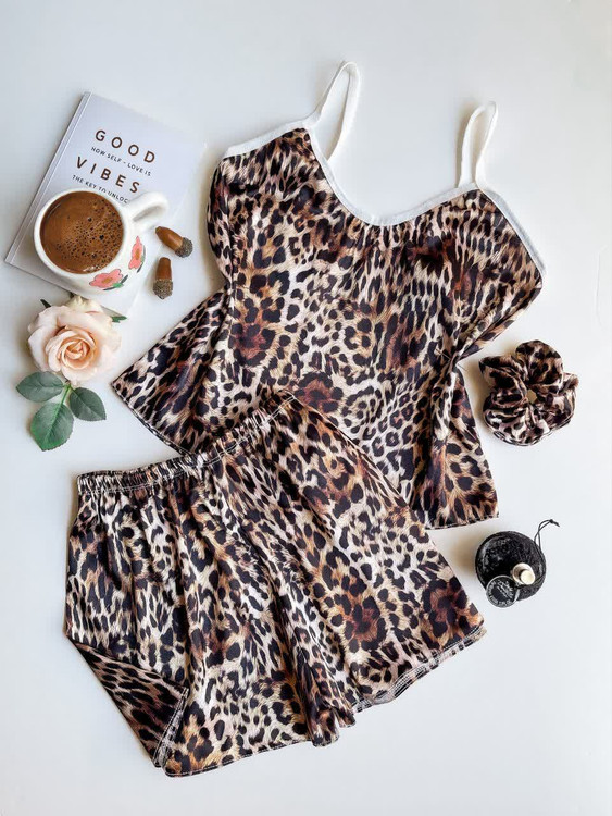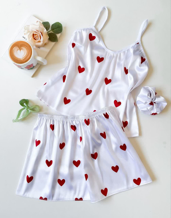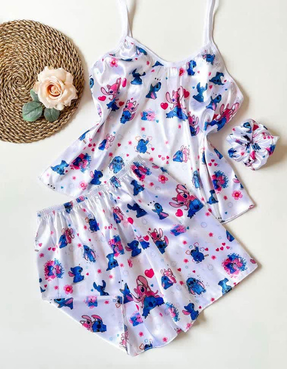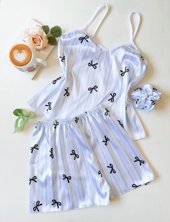 ست (لباس خواب) ساتن تاپ و شلوارک ال ایکس با کش مو