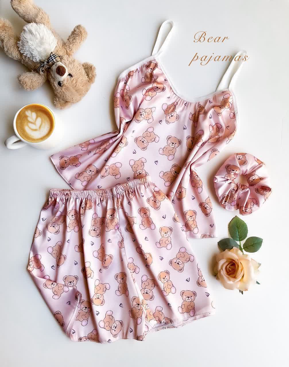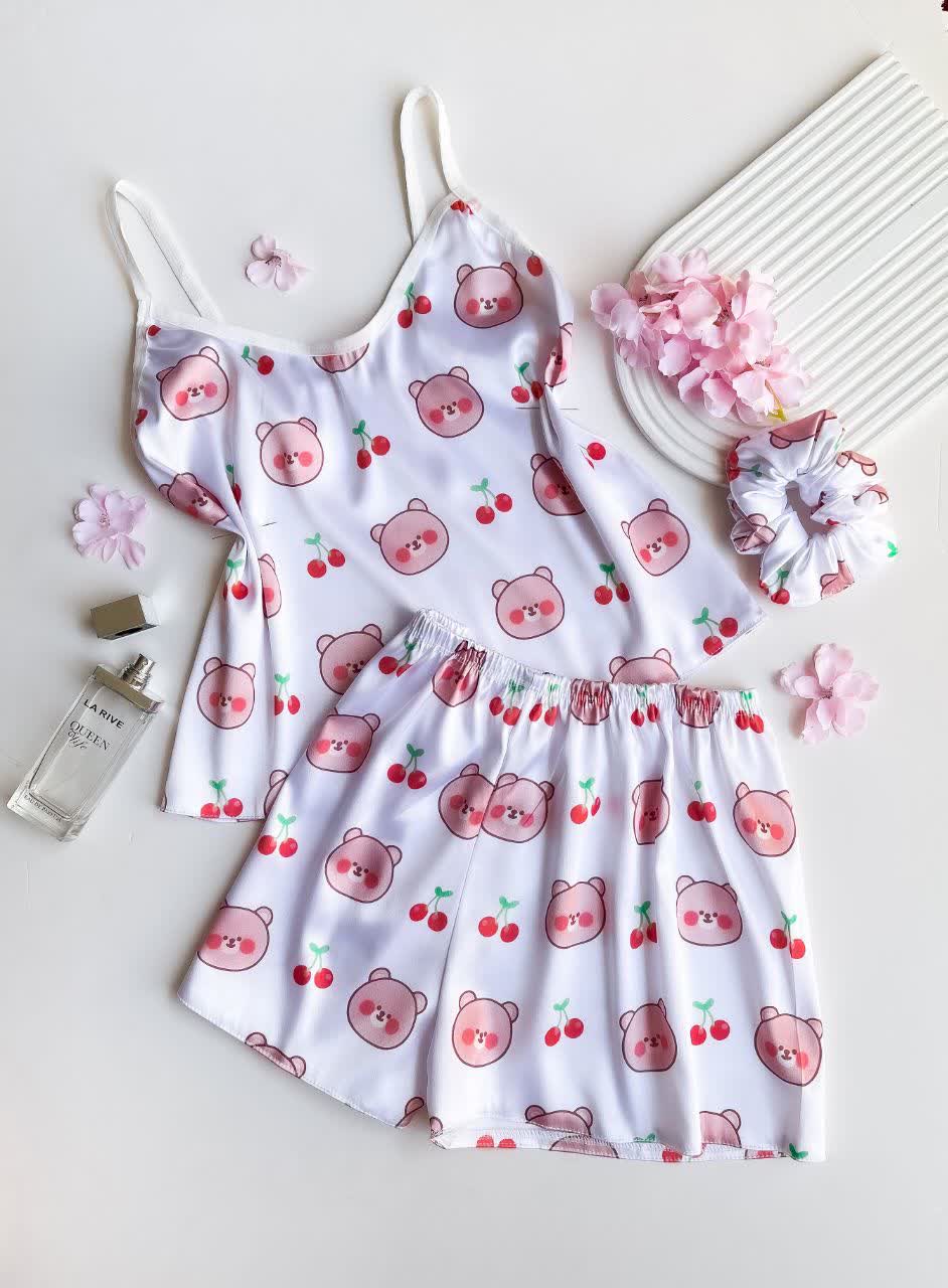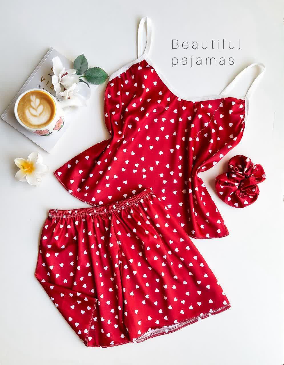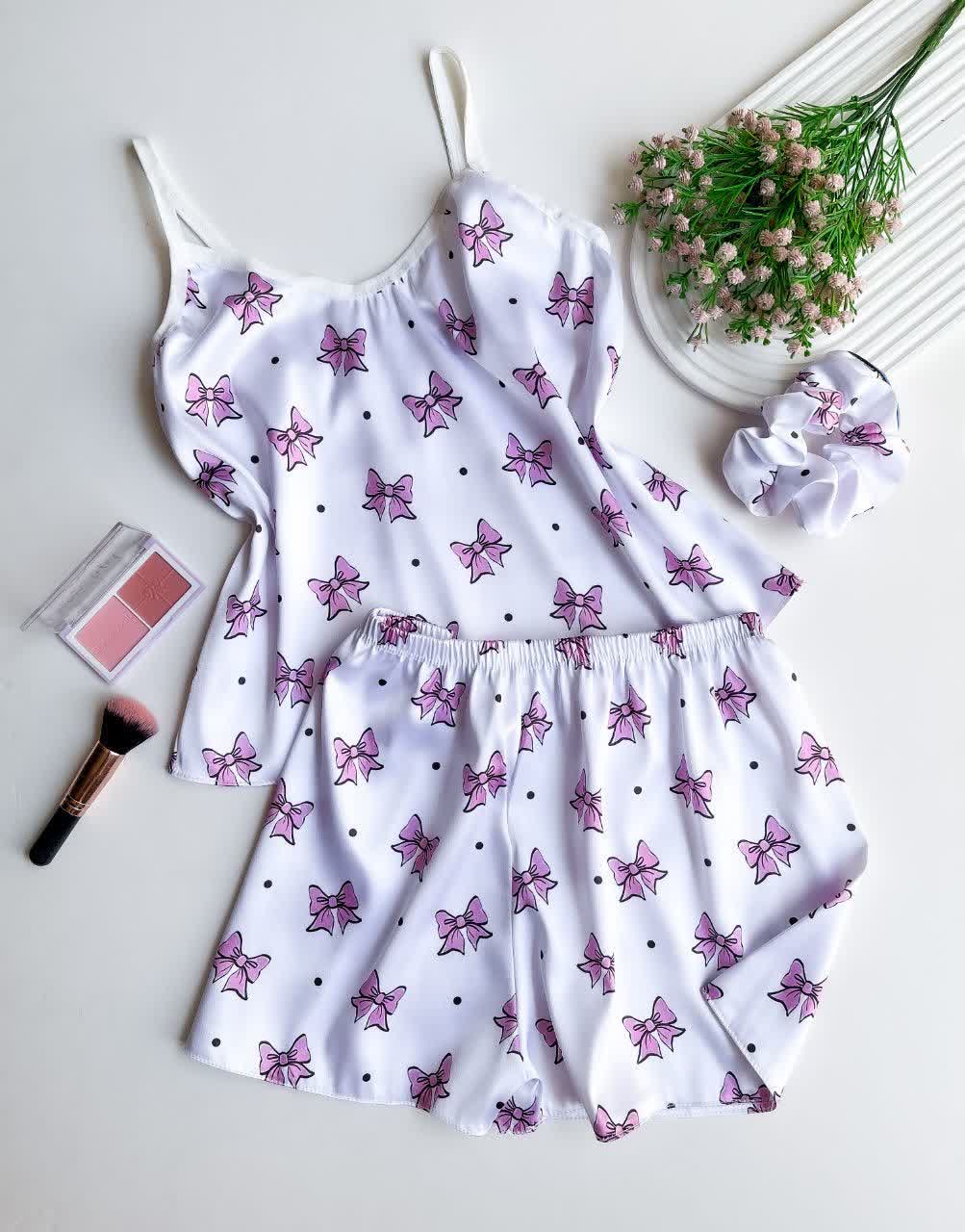 ست ساتن ال ایکس تاپ و شورتک با کش موی زنانه لباس خواب