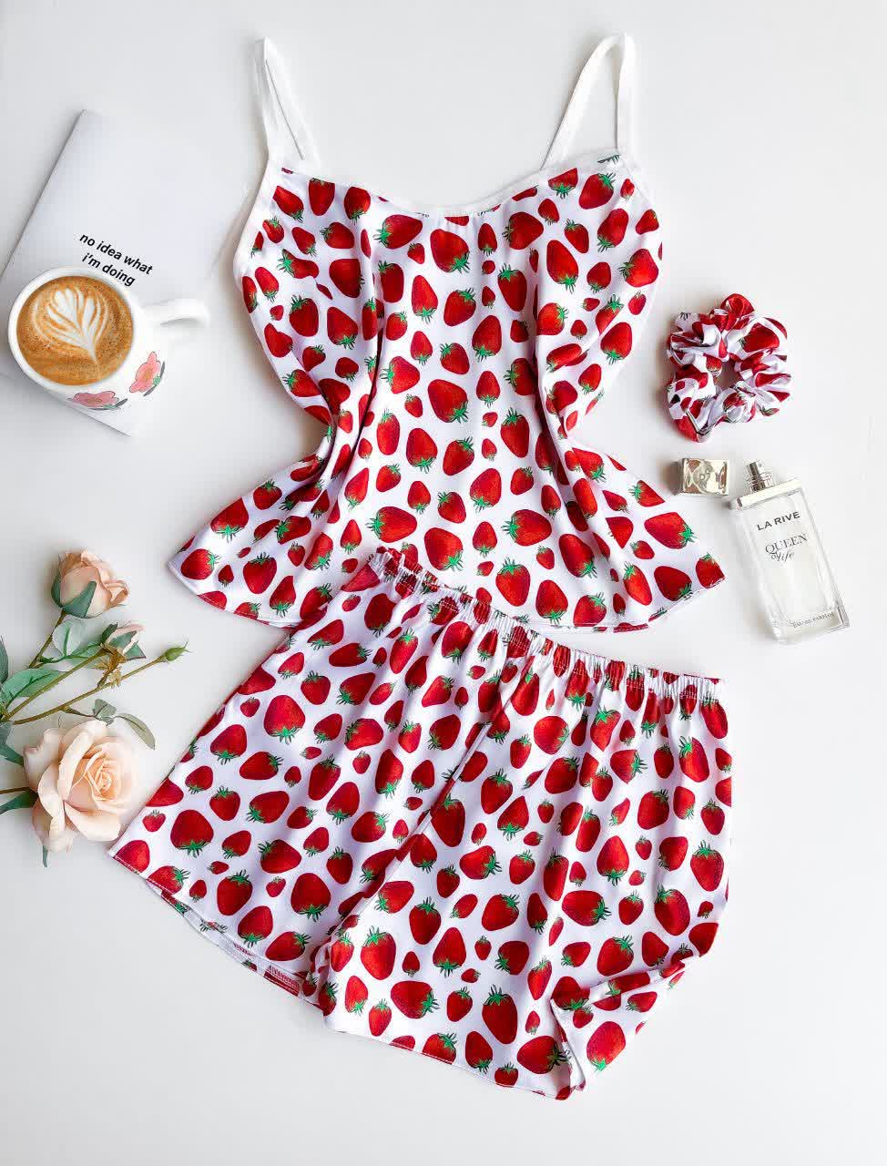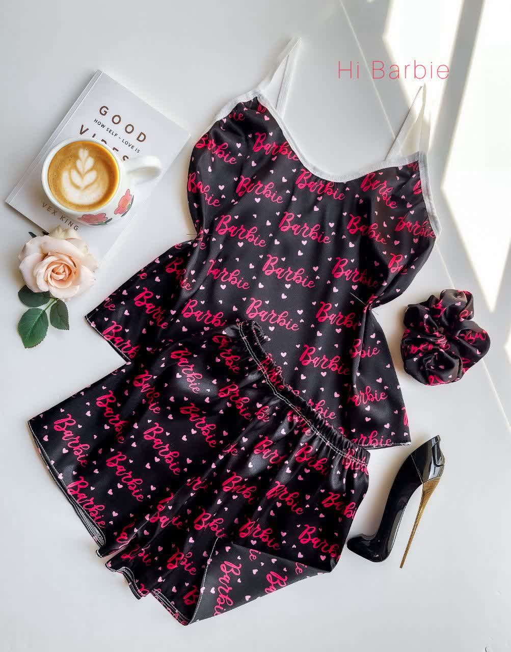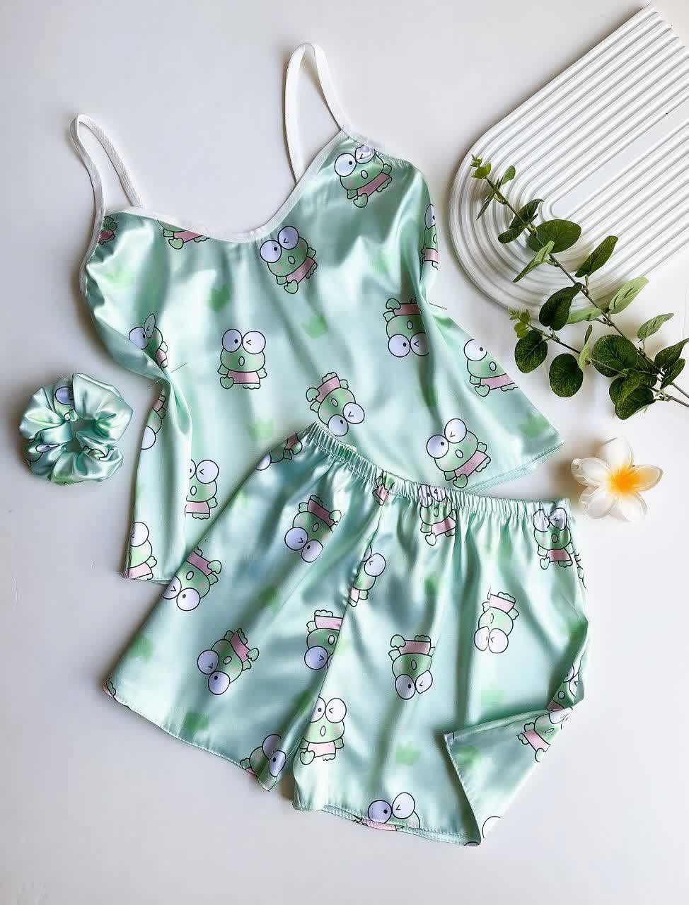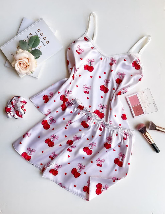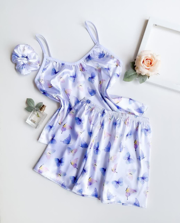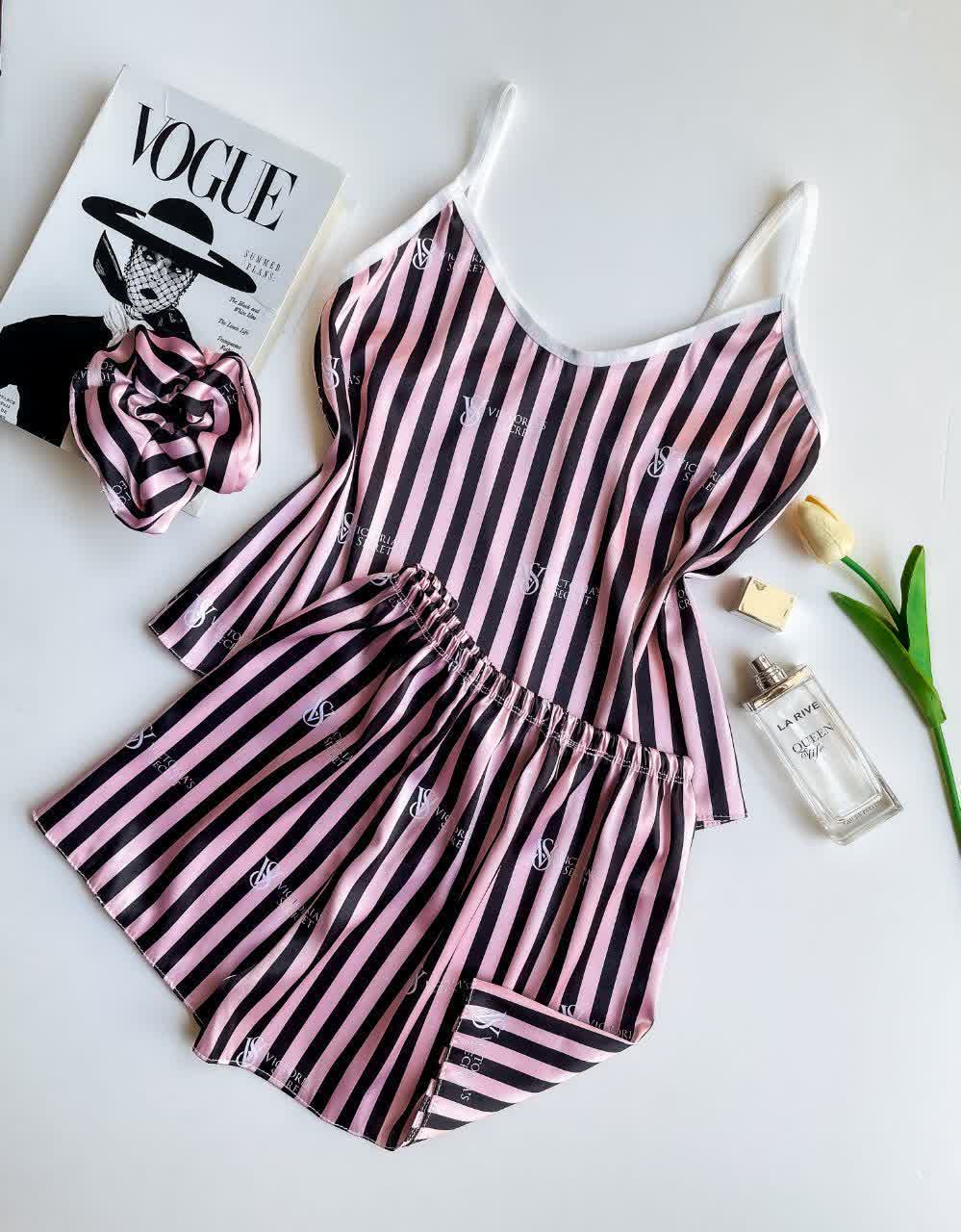 ست ساتن ال ایکس تاپ و شورتک با کش موی زنانه لباس خواب